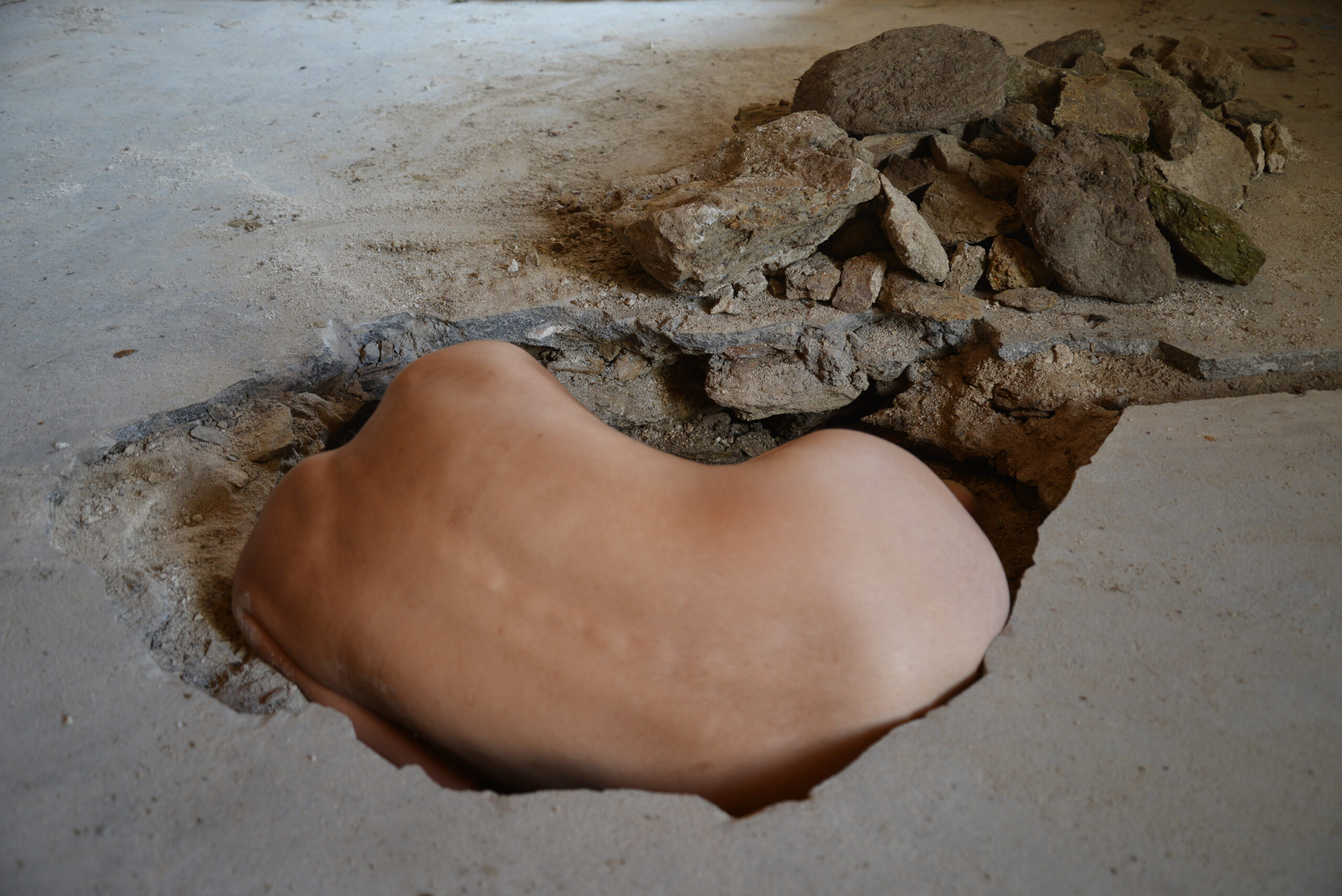 De janvier à juin, Célia Coëtte investit l’atelier du premier étage pour son projet de recherche-création « Pause ! Quitter la brûlure ». Artiste plasticienne, elle mêle sculpture, installation et performance, explorant rituels populaires, surconsommation et épuisement des corps.